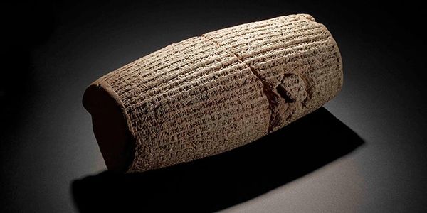 Ostovane-ye Kūrosh or Cyrus Charter (منشور کوروش) is an ancient clay cylinder, on which is written a declaration in Akkadian cuneiform script in the name of Persia's Achaemenid king Cyrus the Great. It dates from the 6th century BC and was discovered in the ruins of Babylon in Mesopotamia (modern Iraq) in 1879.